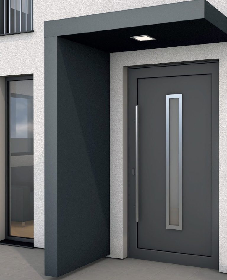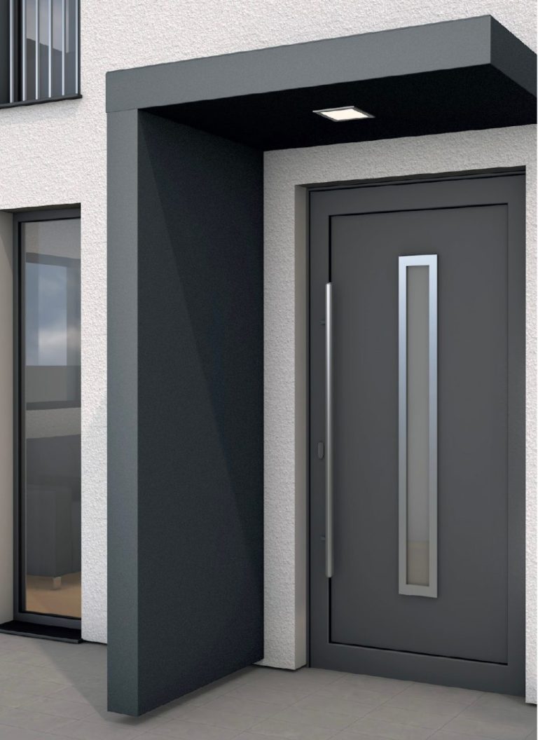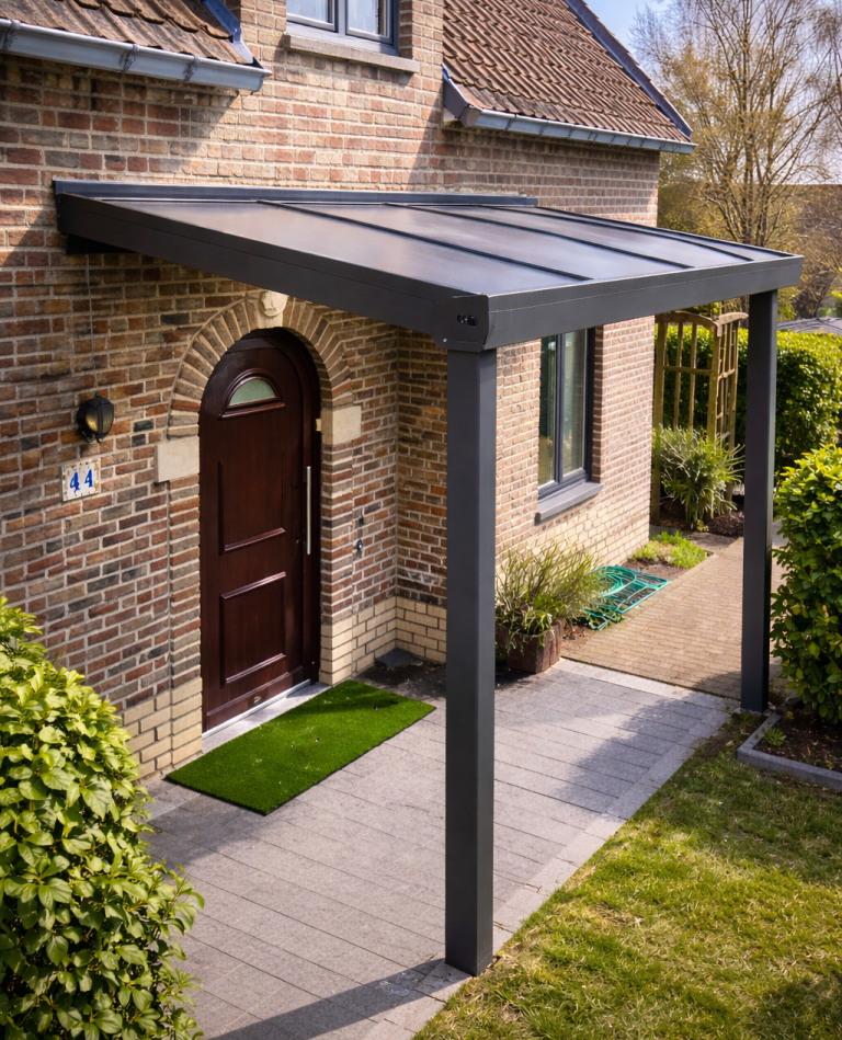 Unsere Vordächer verbinden modernes Design mit zuverlässigem Wetterschutz und werten Ihren Eingangsbereich sichtbar auf.